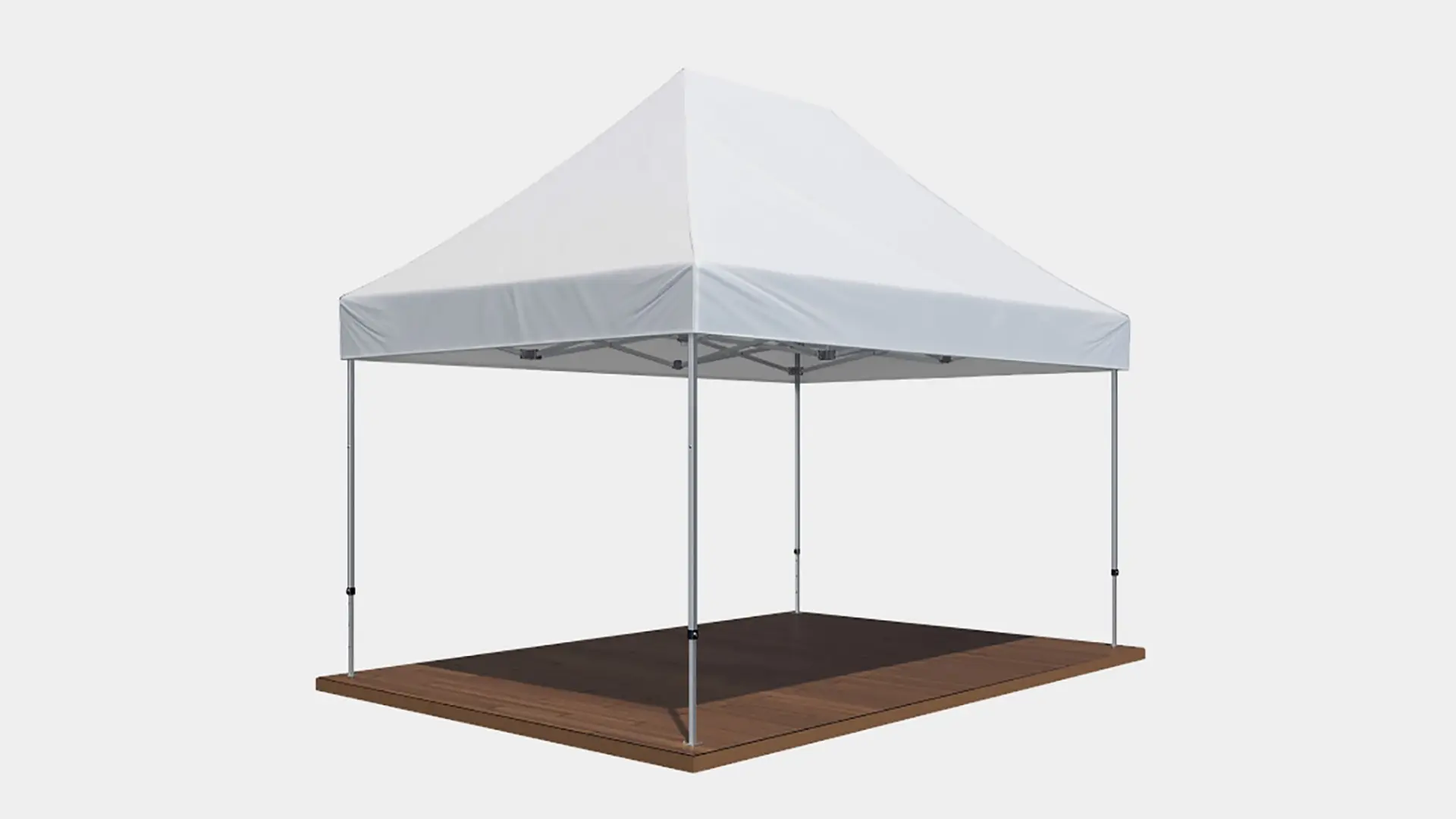 Каркасно-тентовая конструкция квадратной формы с остроконечной крышей.