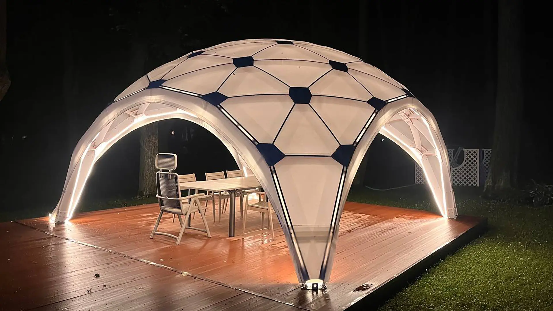 • Эстетичный и современный дизайн. Сферические шатры имеют оригинальную геометрическую форму, которая выделяется на любом мероприятии. Благодаря футуристическому виду они неизменно привлекают внимание и усиливают визуальное восприятие пространства.