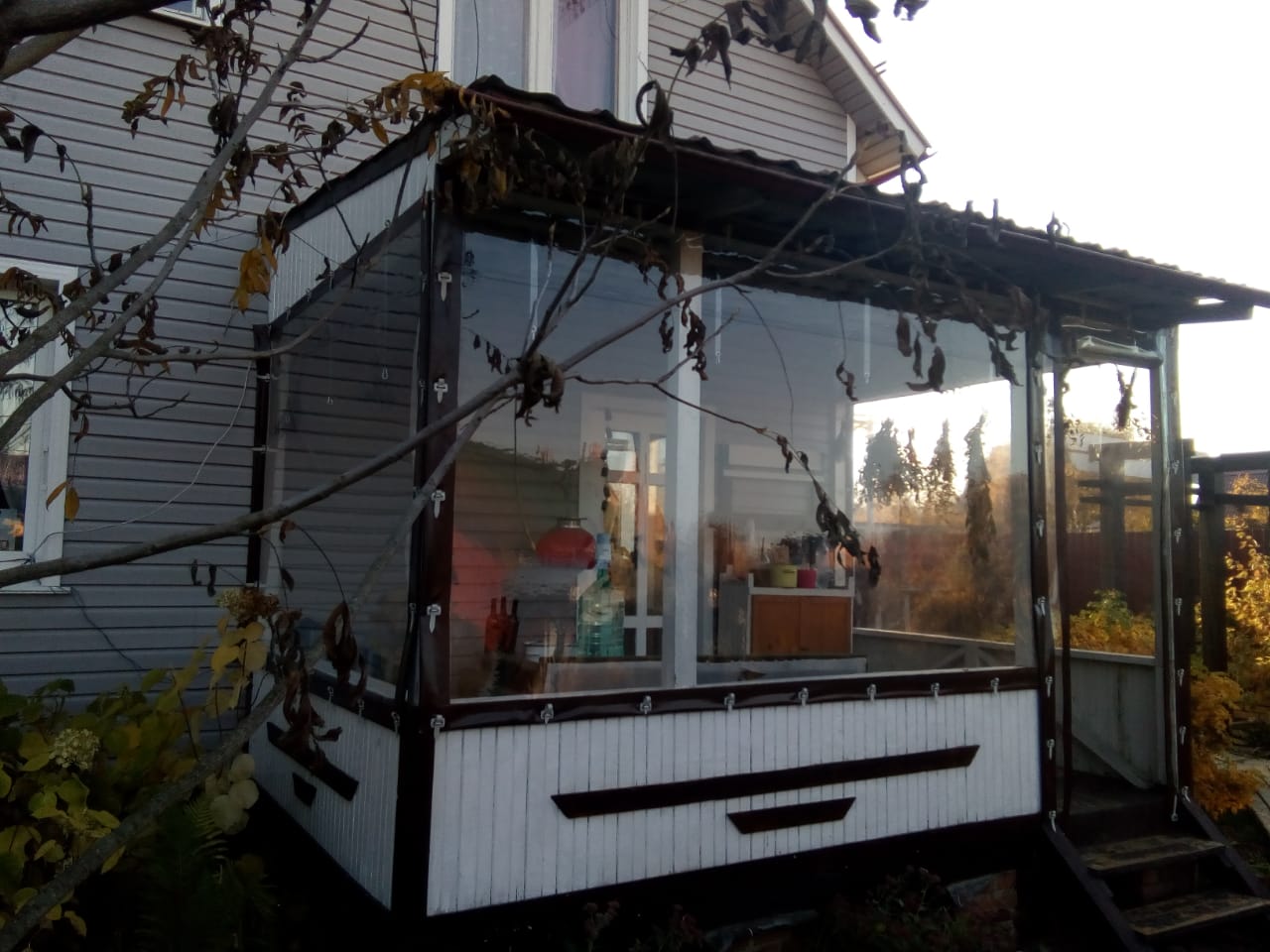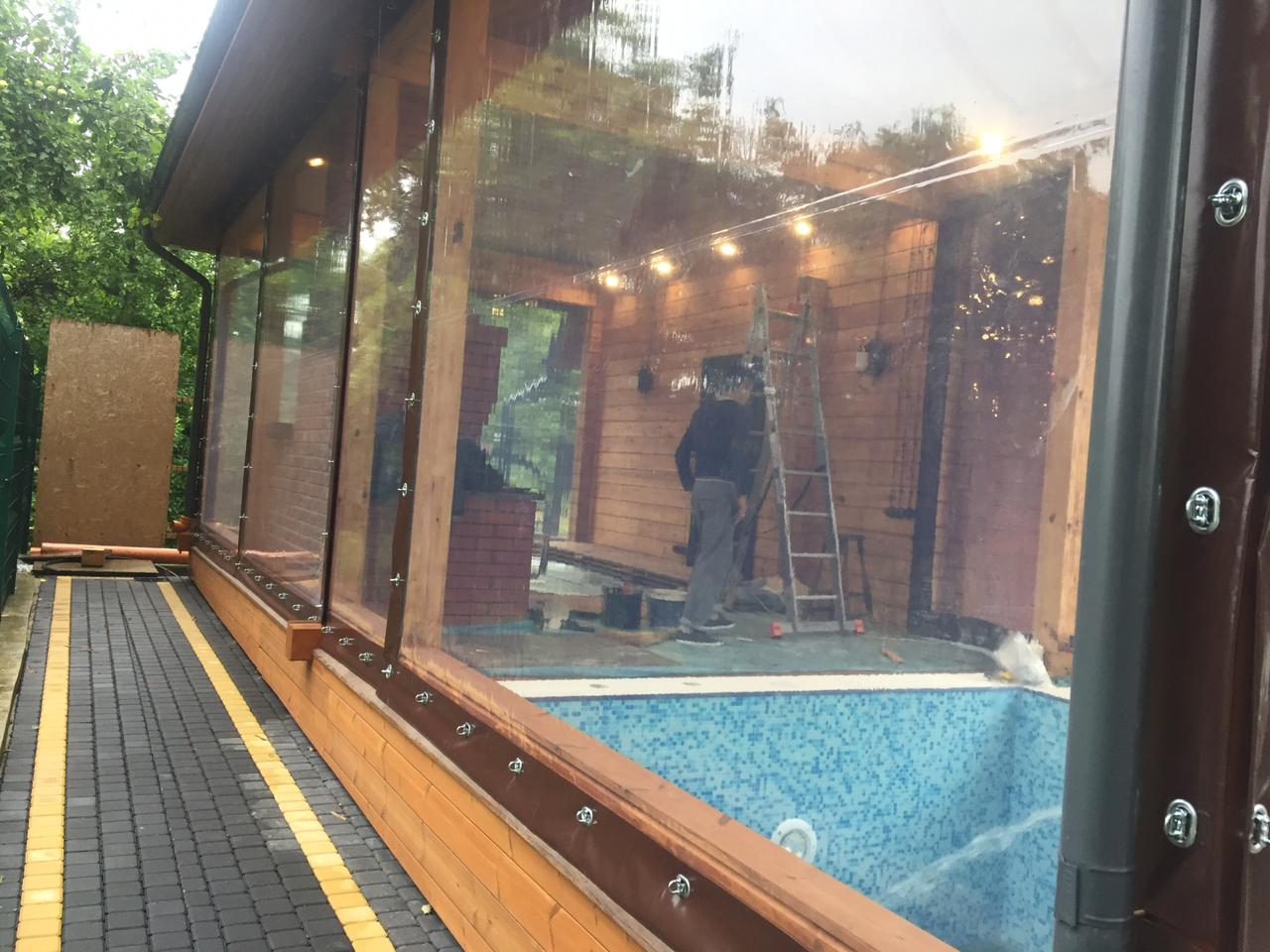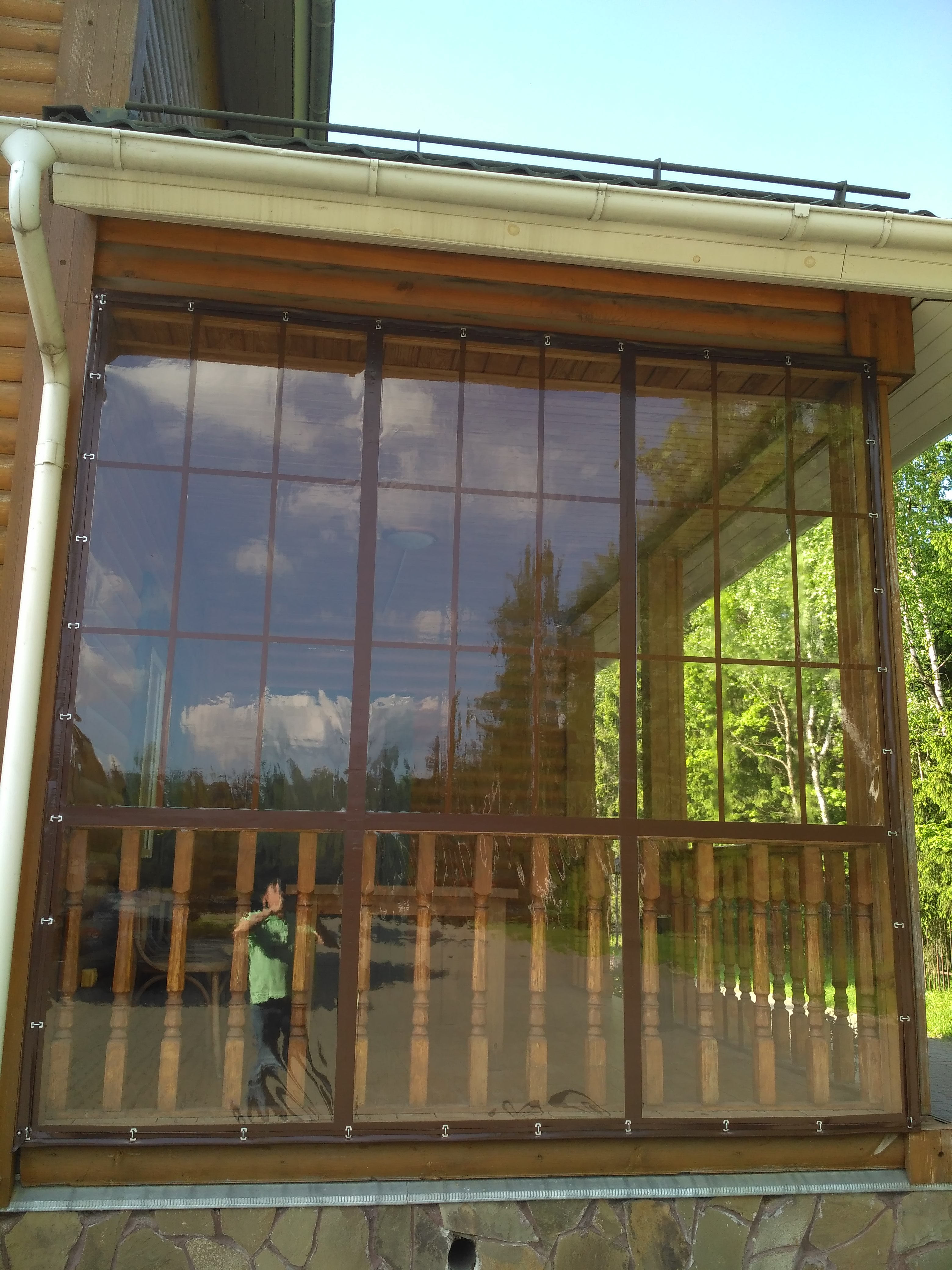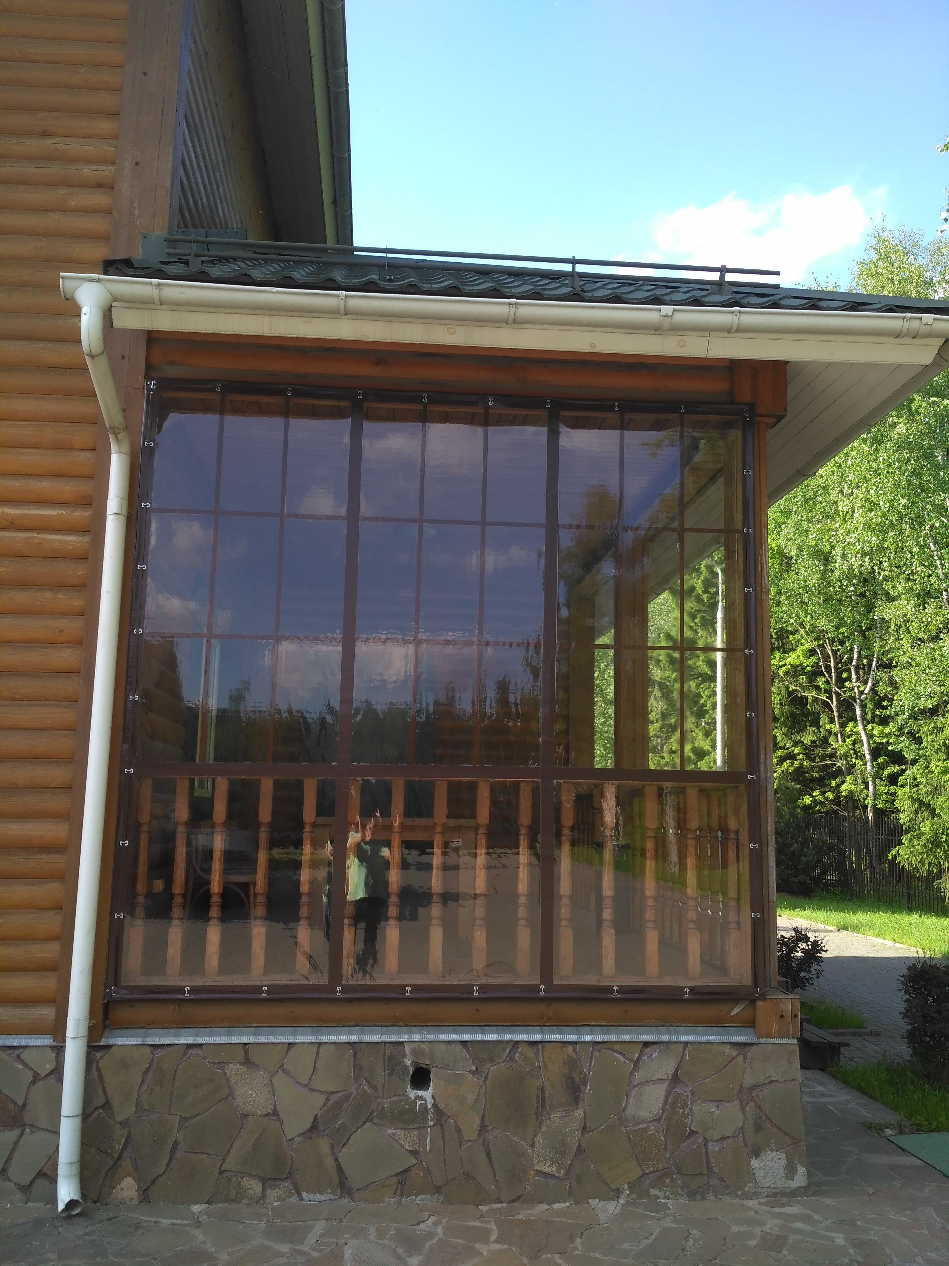 Остекление террасы частного дома гибкими окнами с тонировкой.