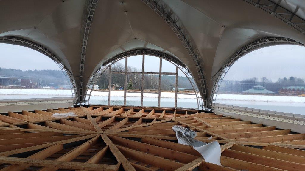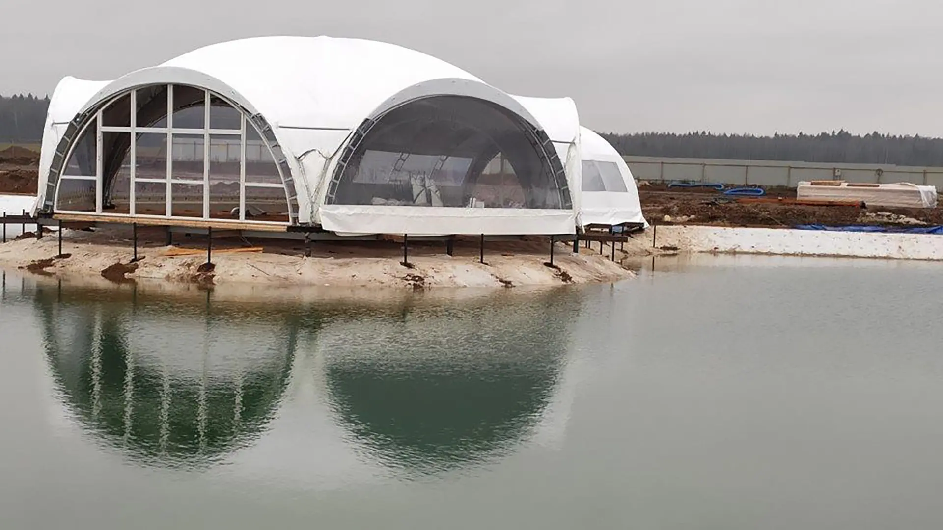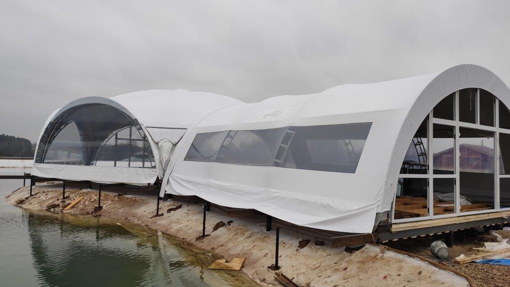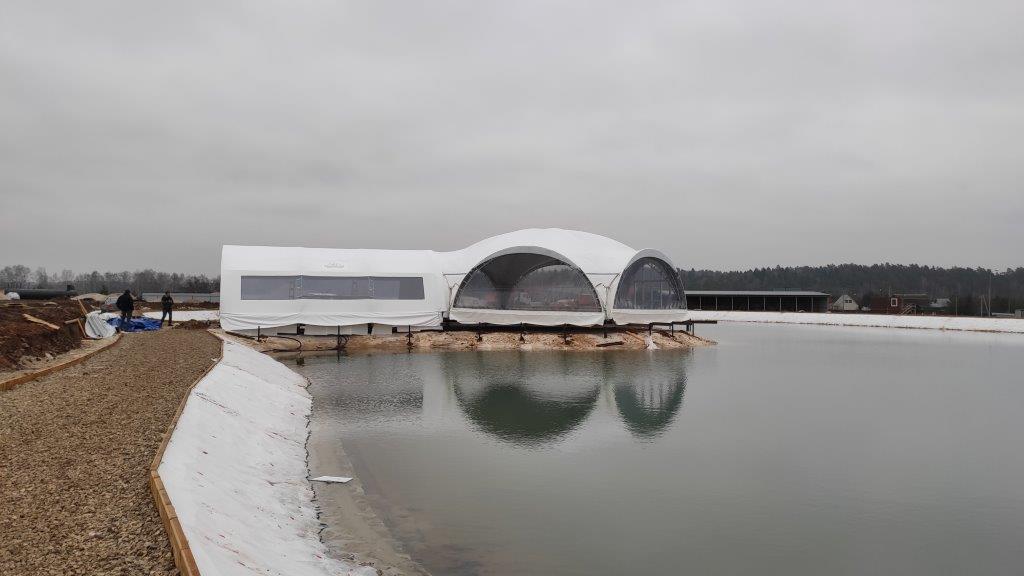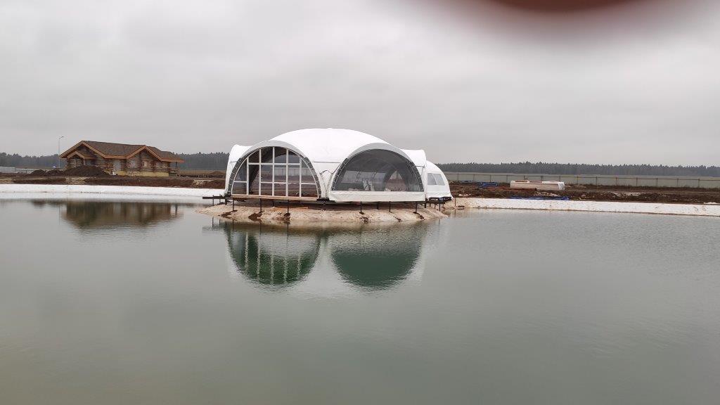 Уникальная конструкция шатра для зоны отдыха у воды.