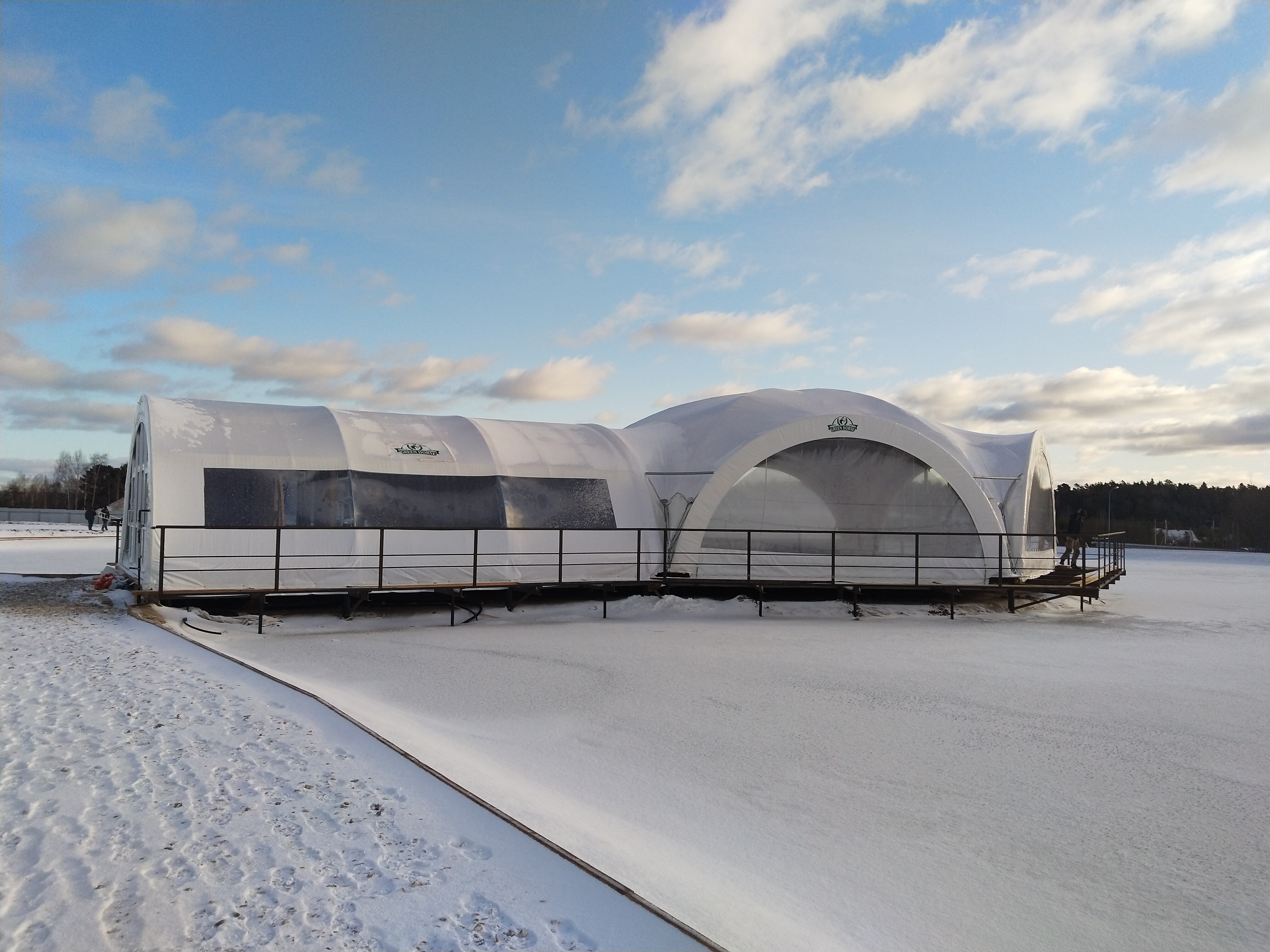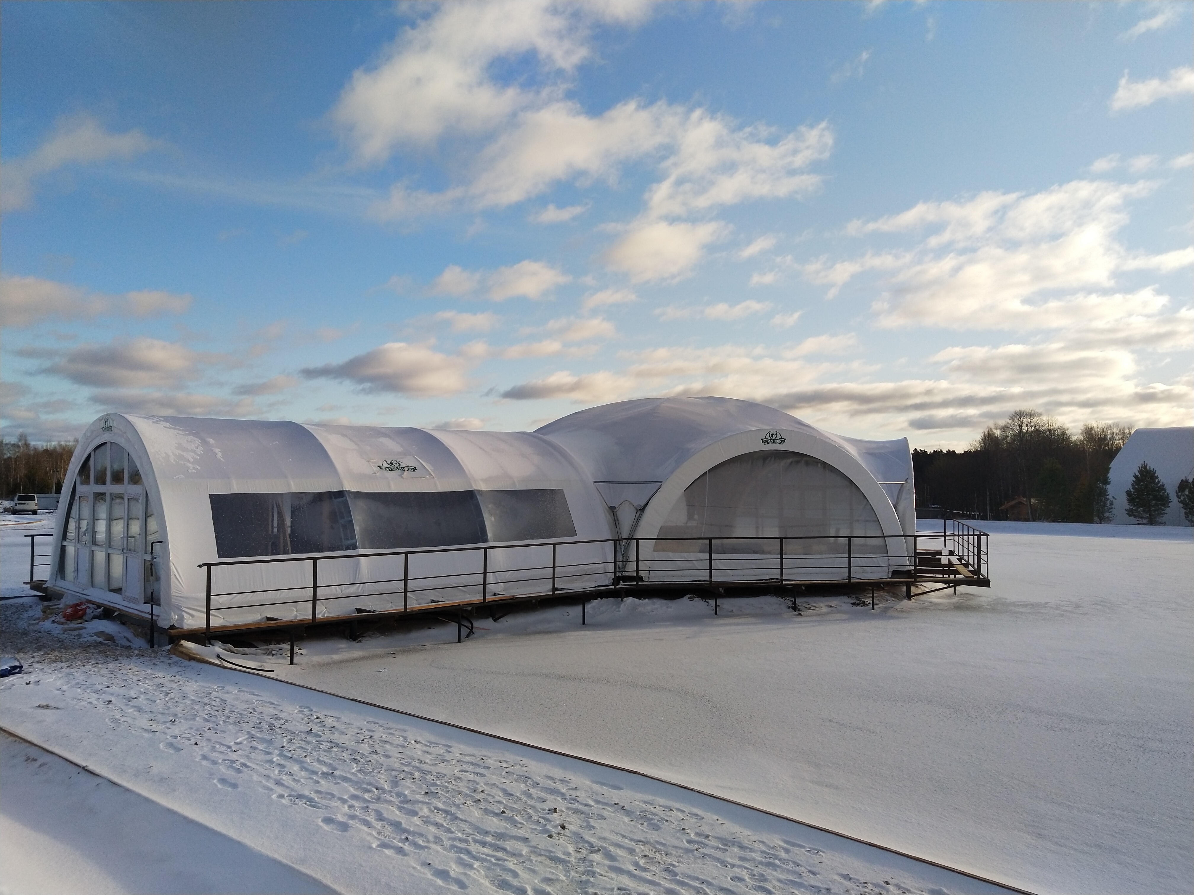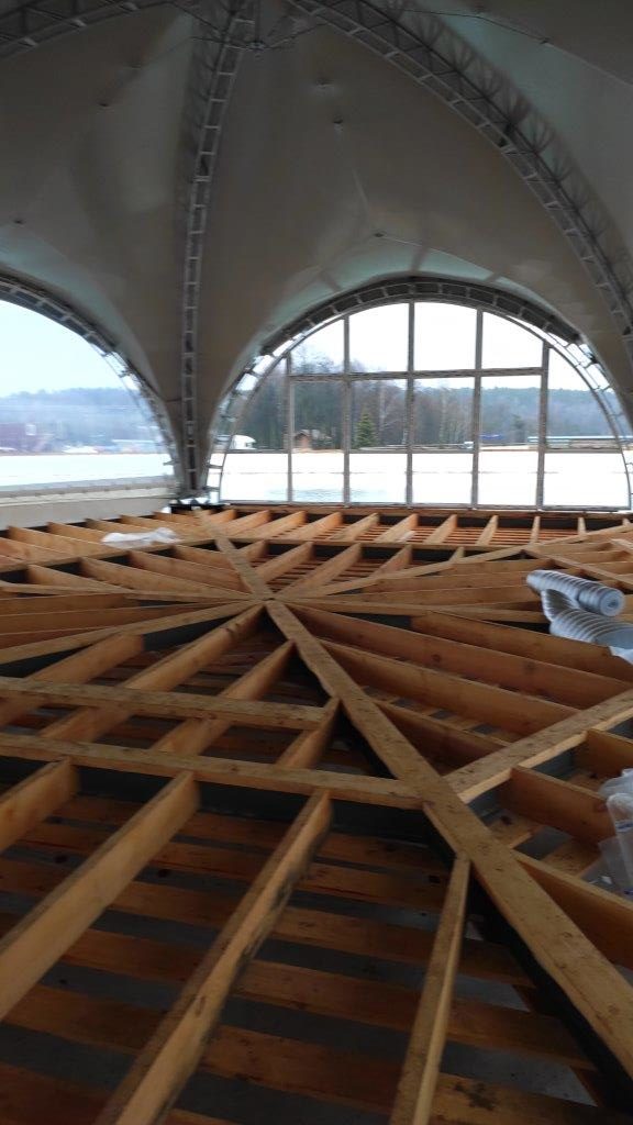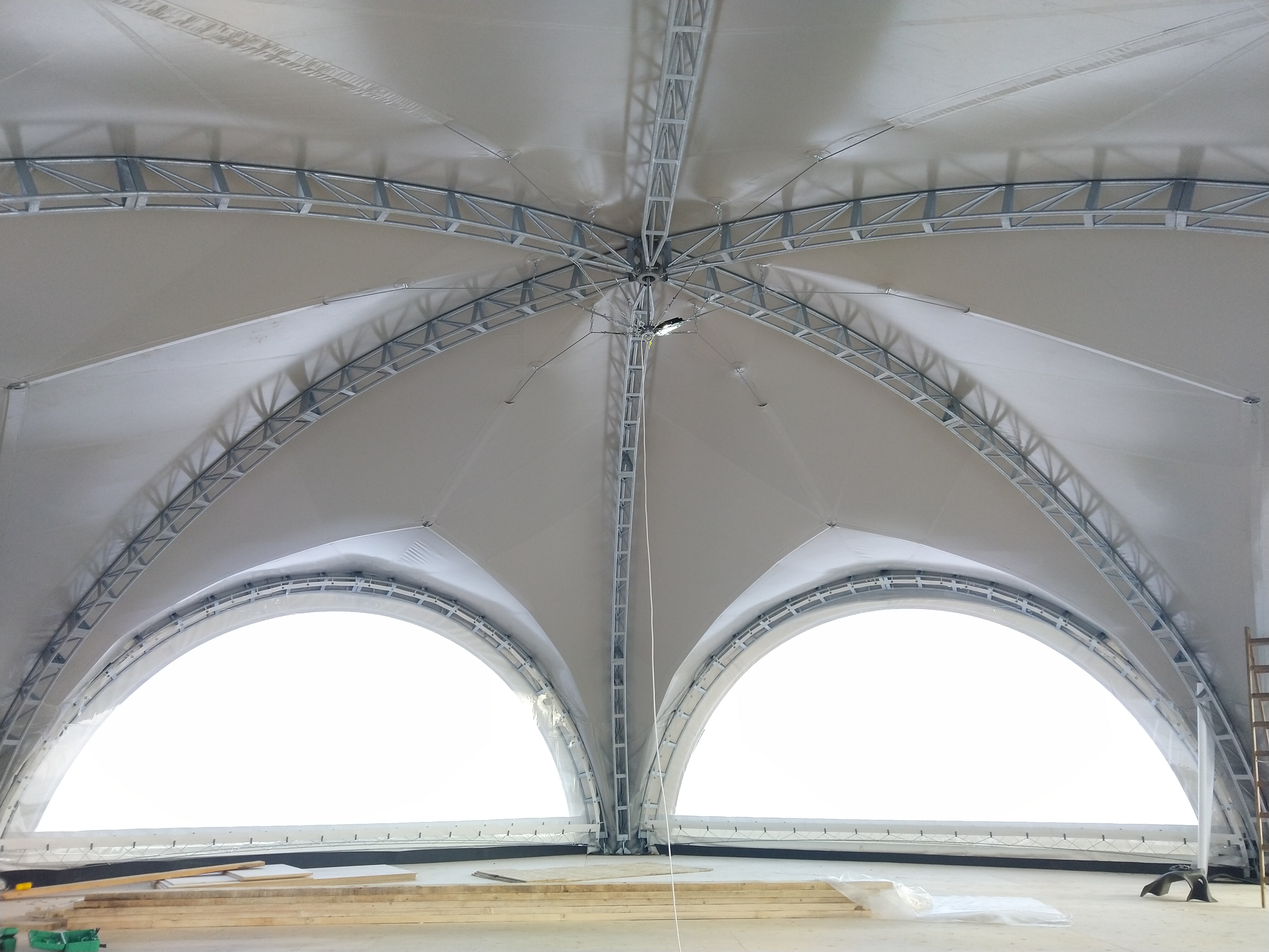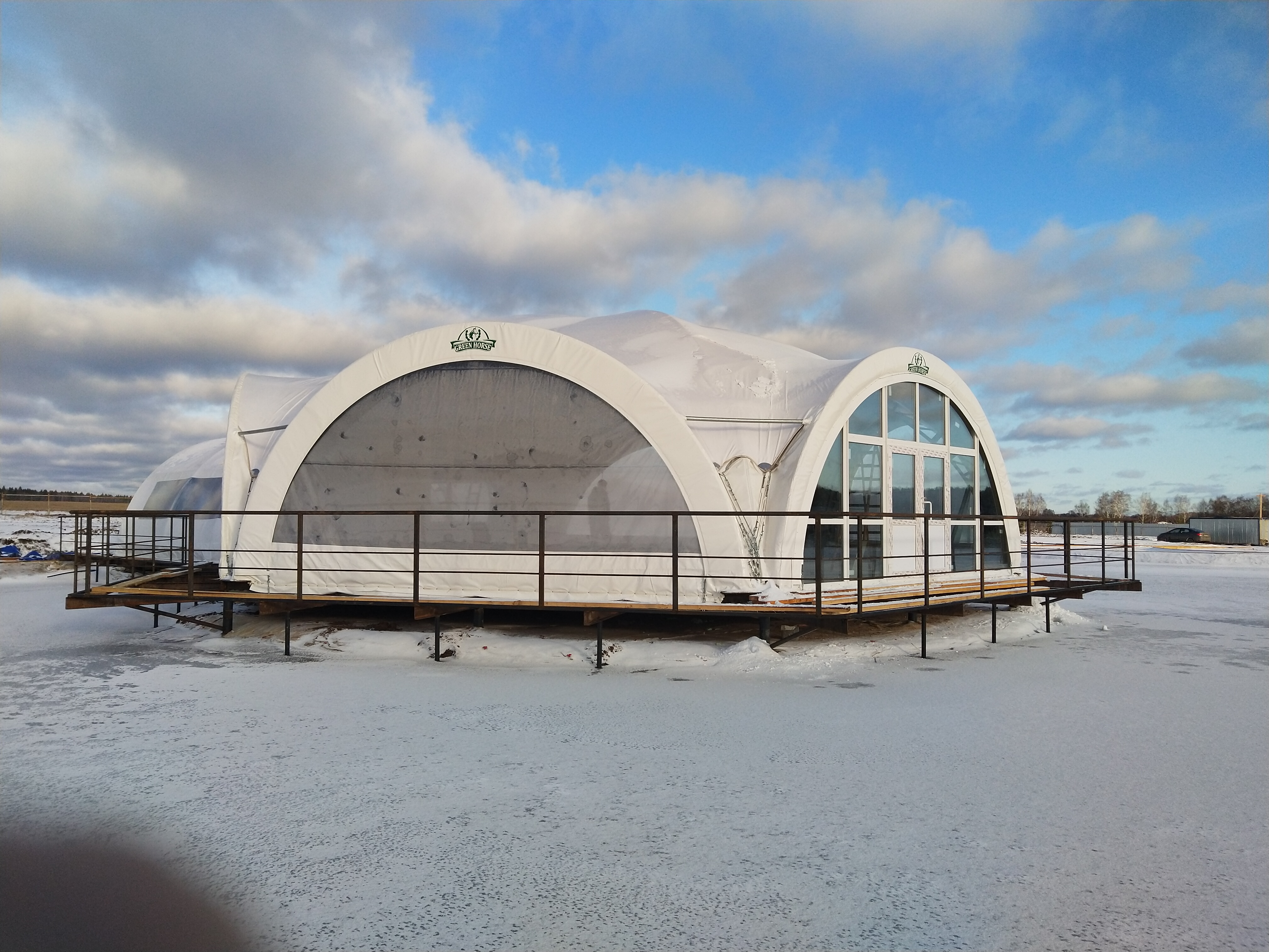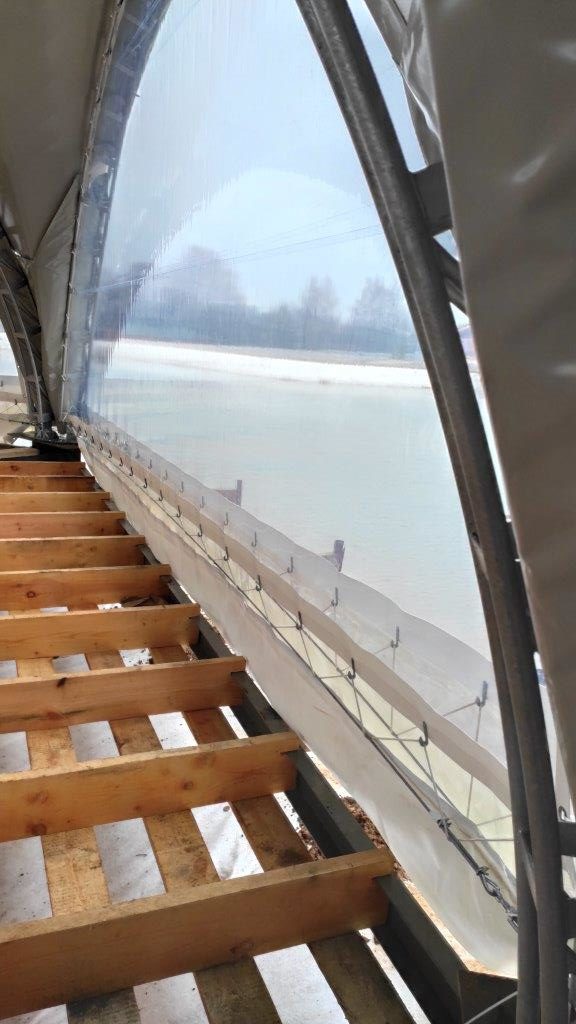 Уникальная конструкция шатра для зоны отдыха у воды. Усиленные крепления с учетом ветровых нагрузок на открытой водной поверхности. Использованы влагостойкие материалы и антикоррозийный каркас.