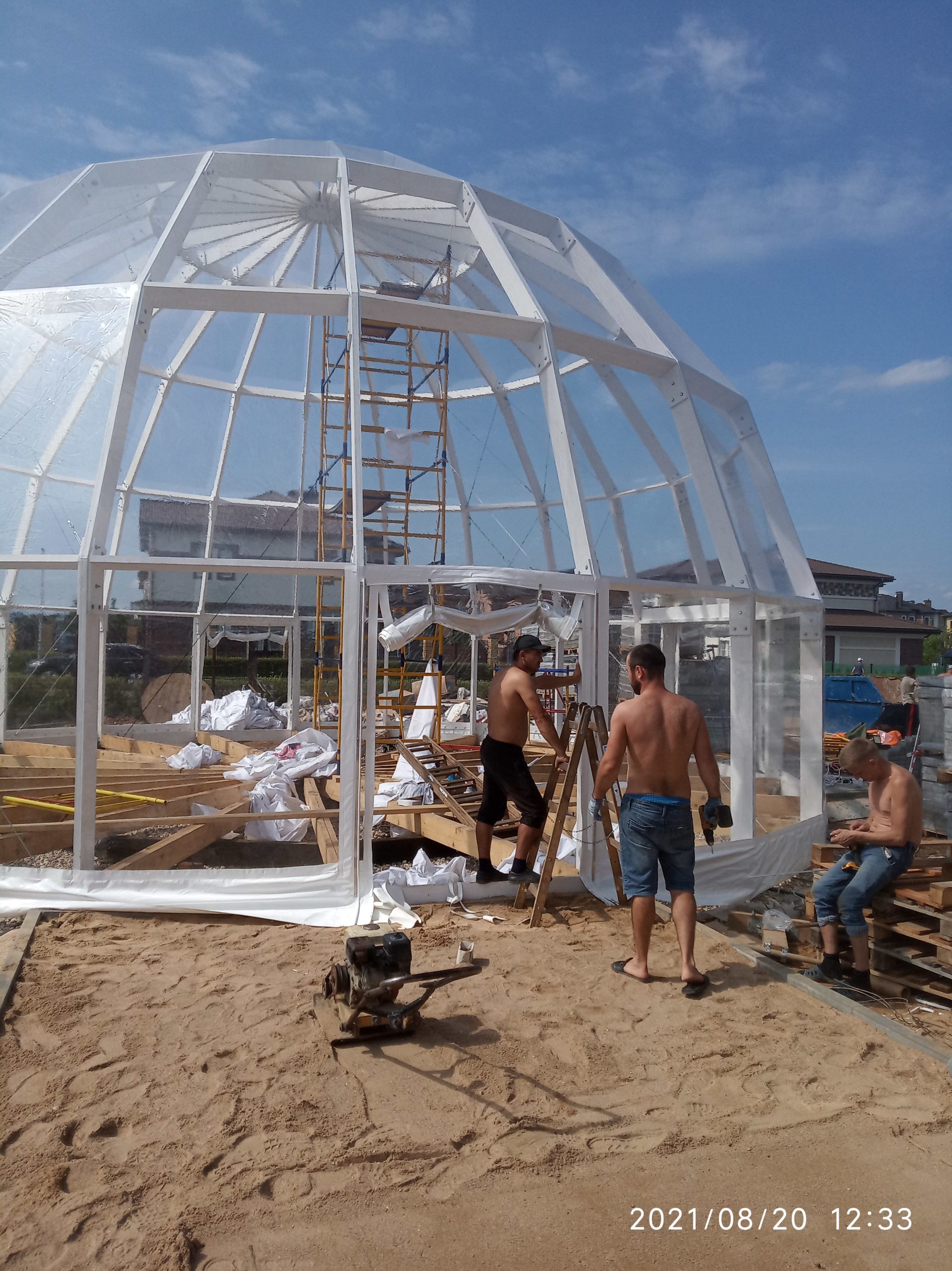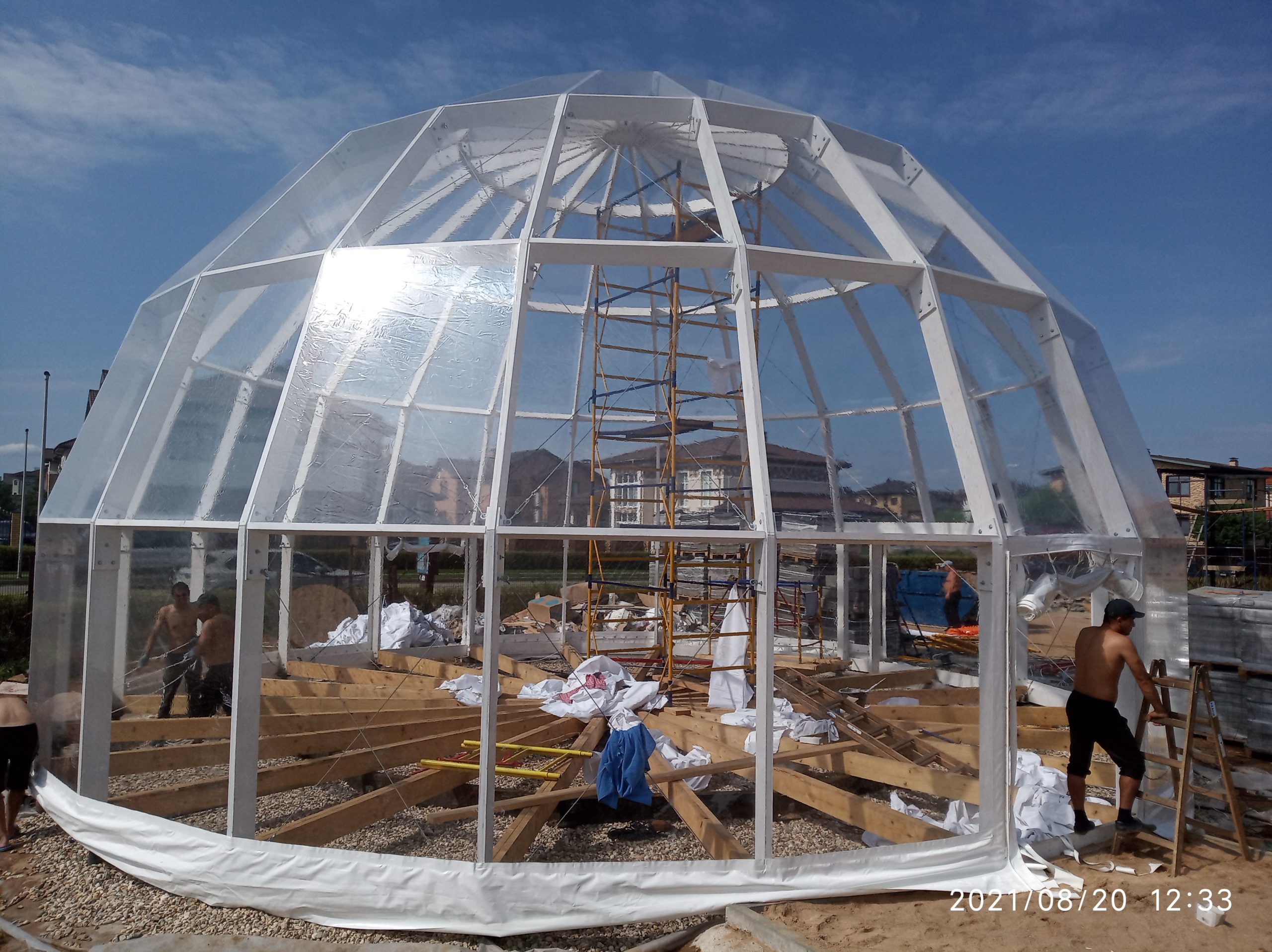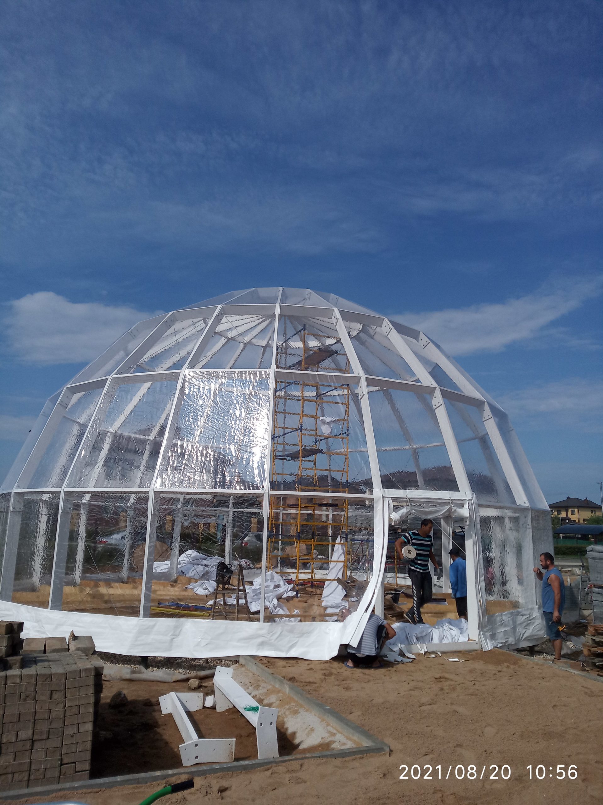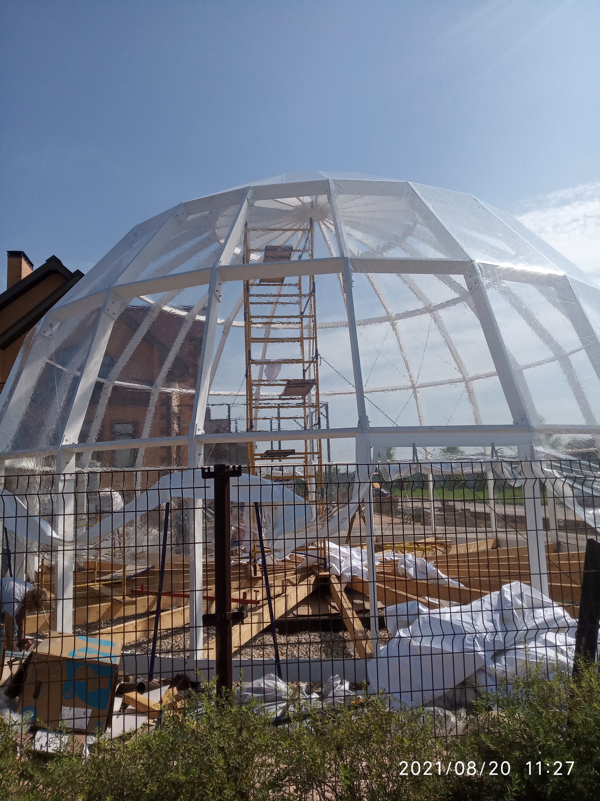 Сферический шатер из прозрачных ПВХ-материалов для мероприятий и зон отдыха.