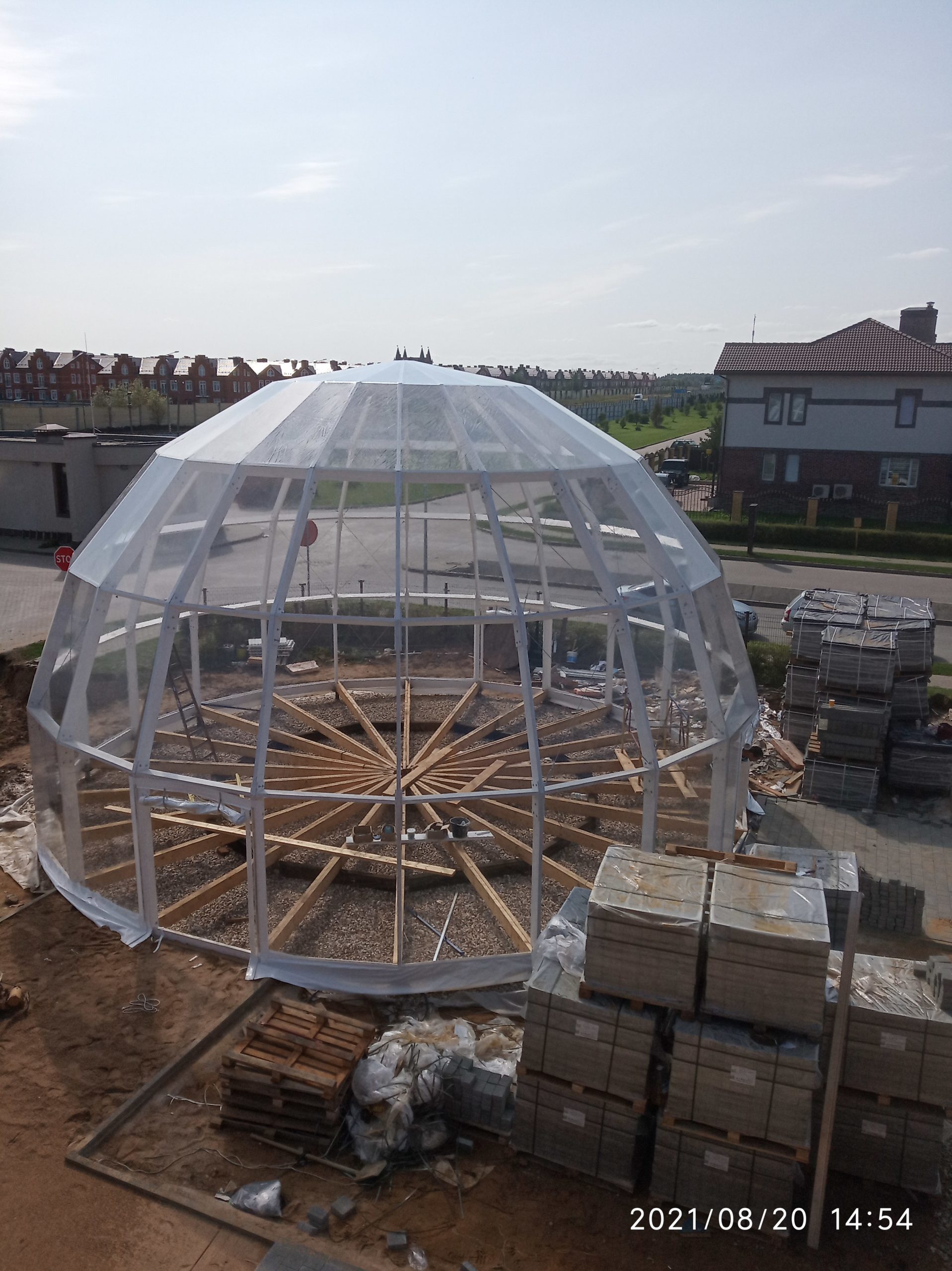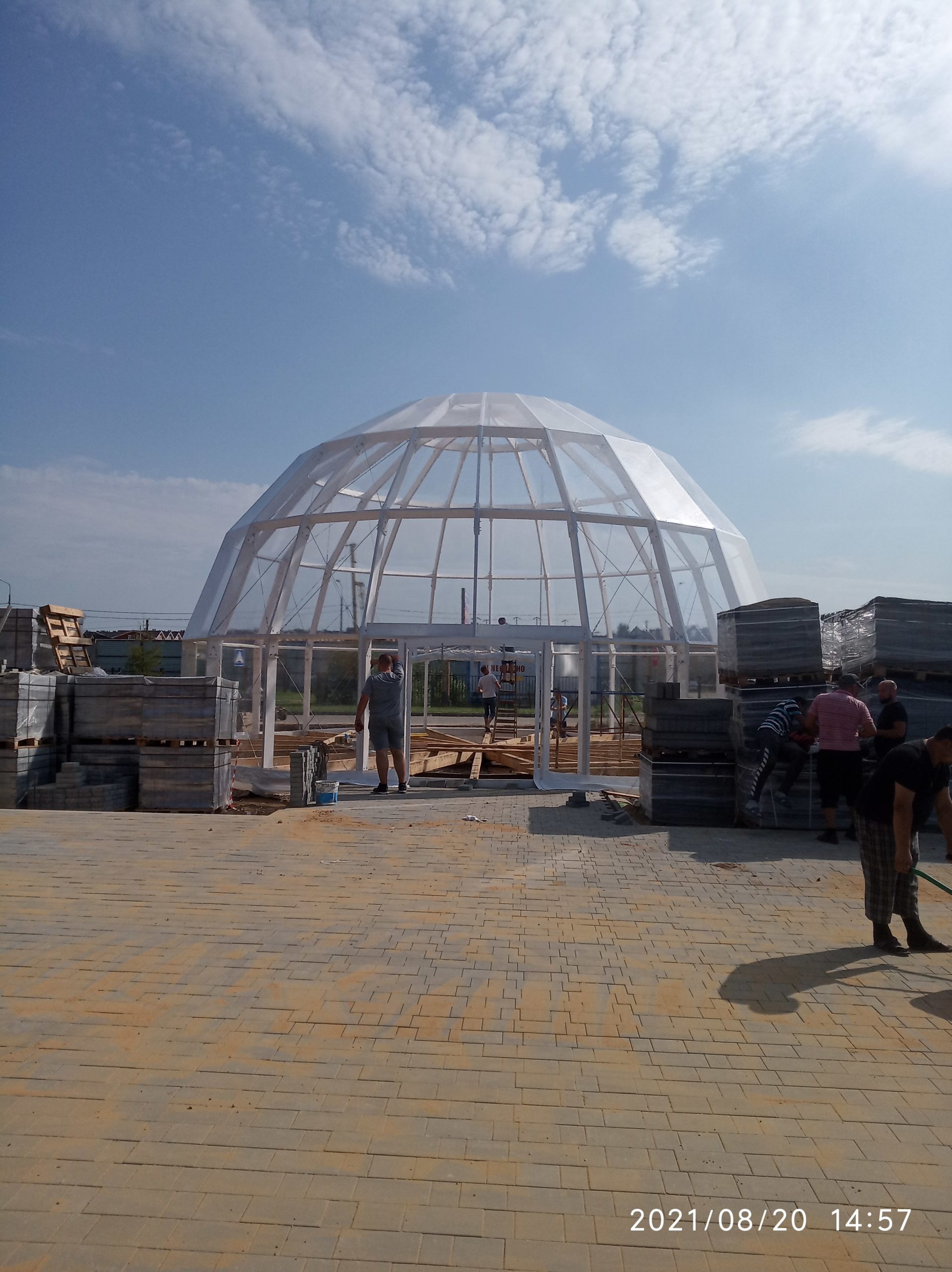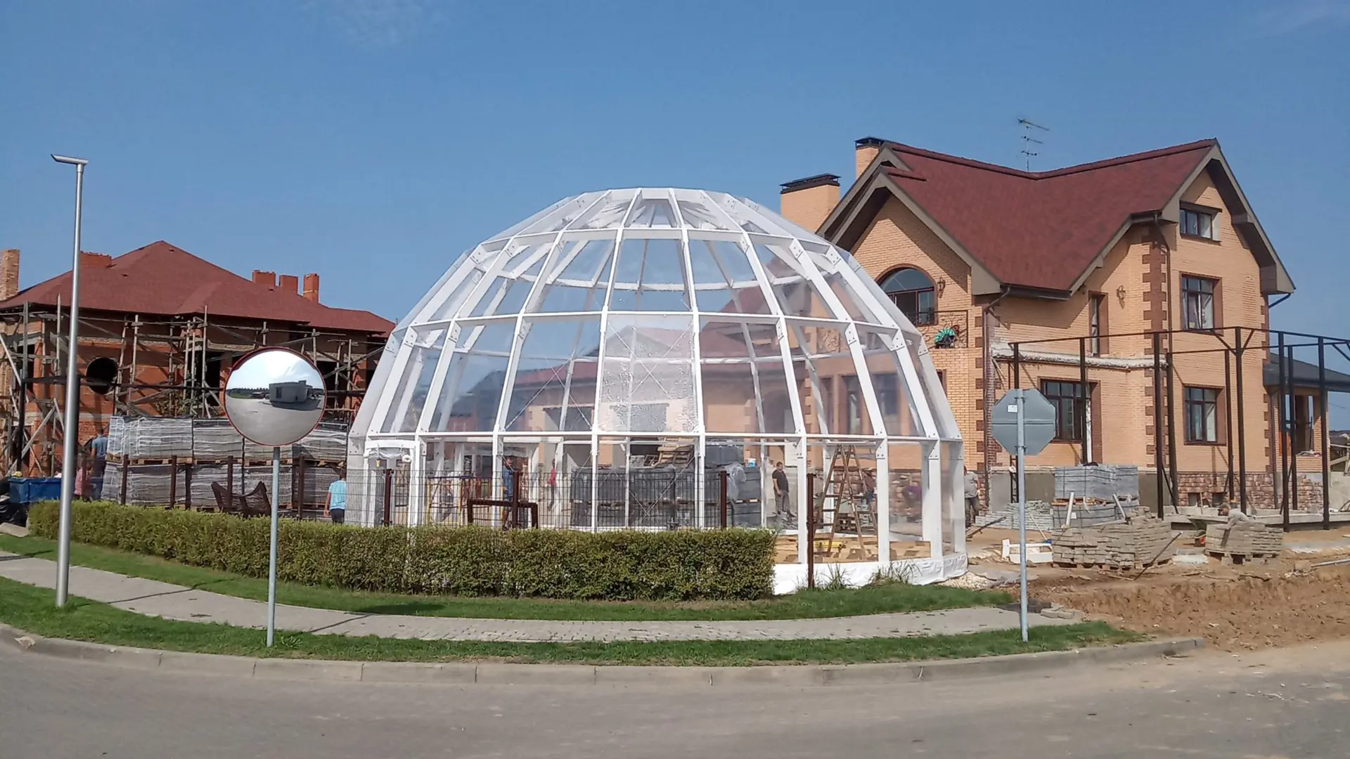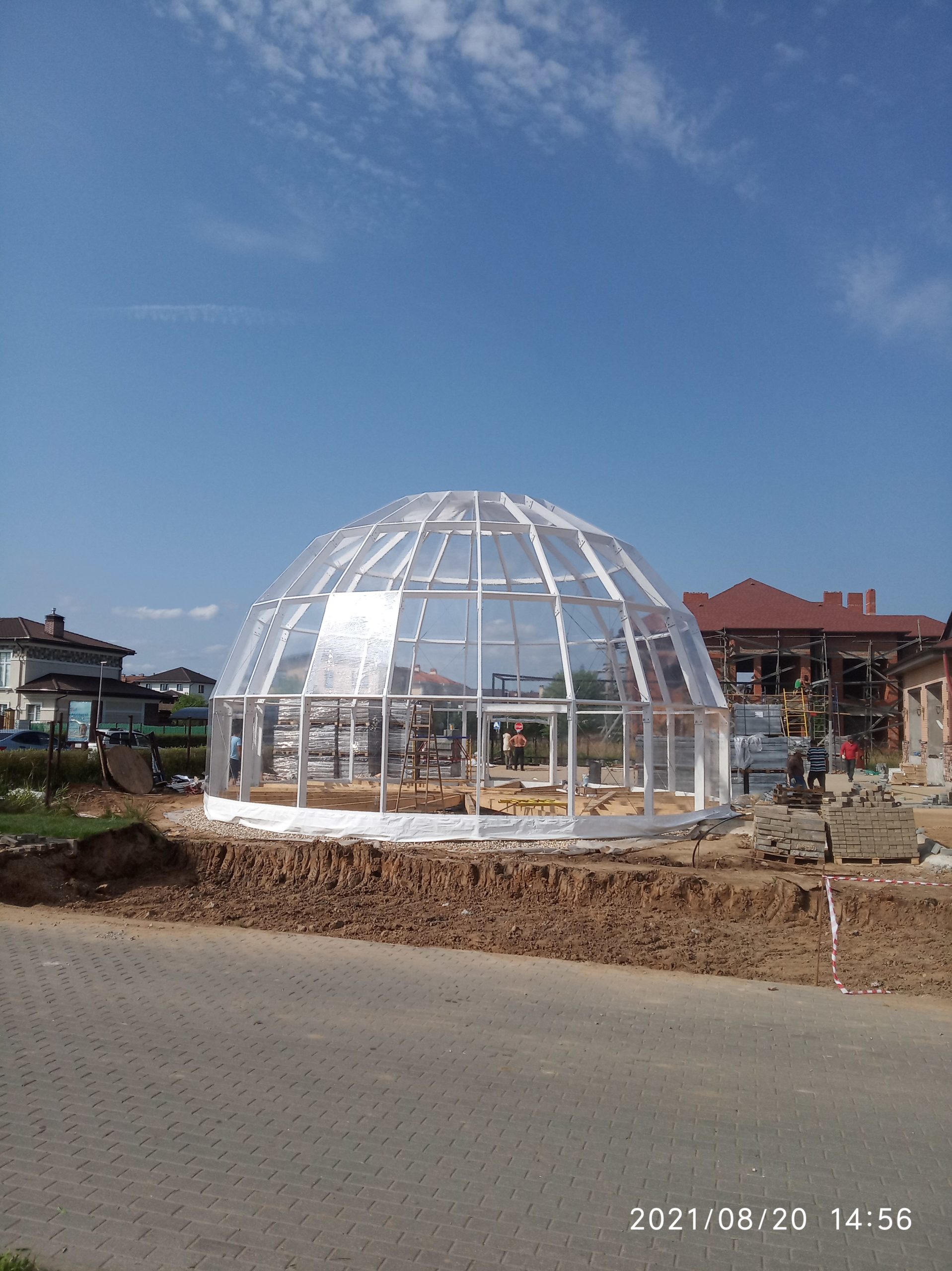 Сферический шатер из прозрачных ПВХ-материалов для мероприятий и зон отдыха.