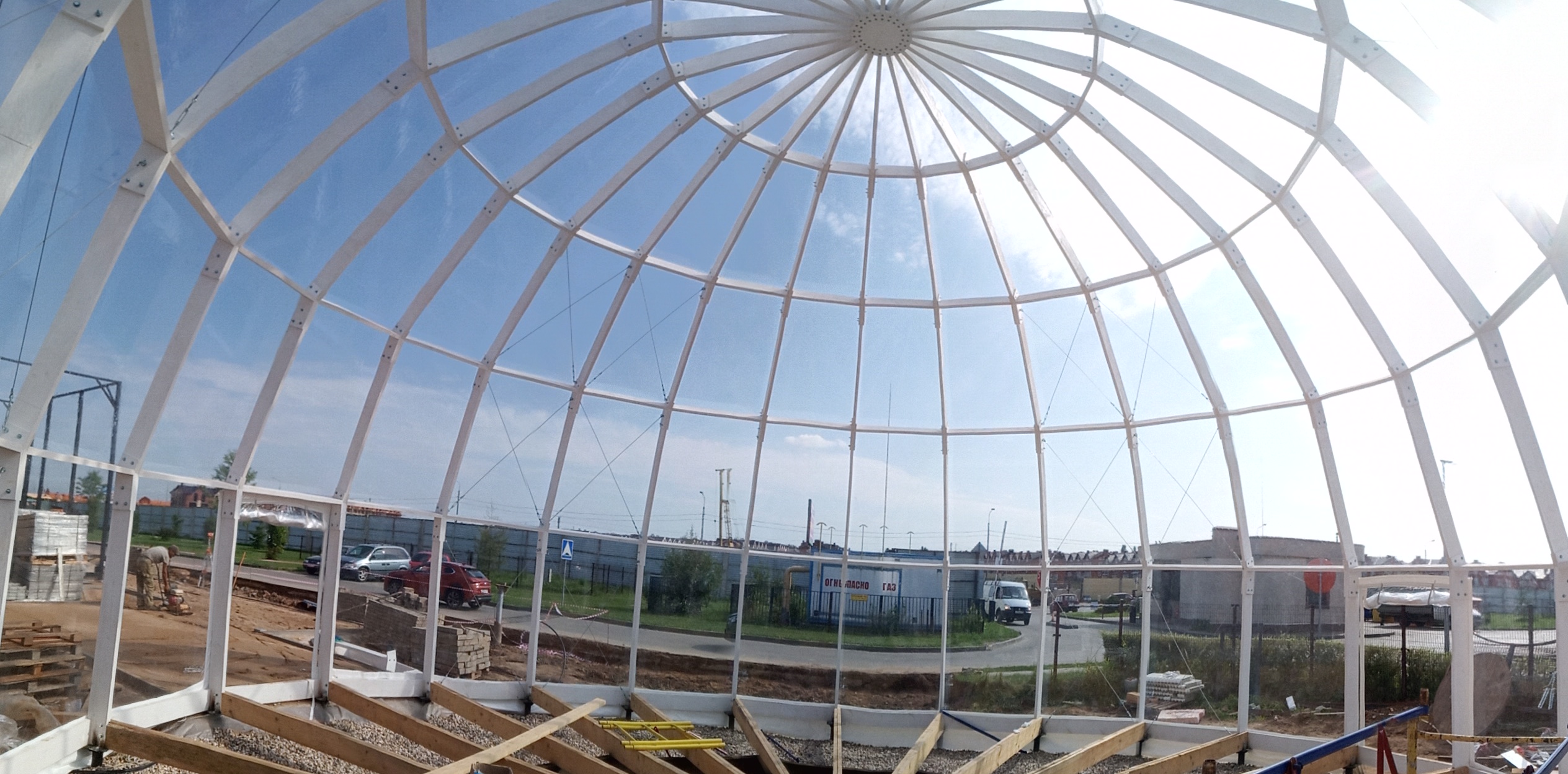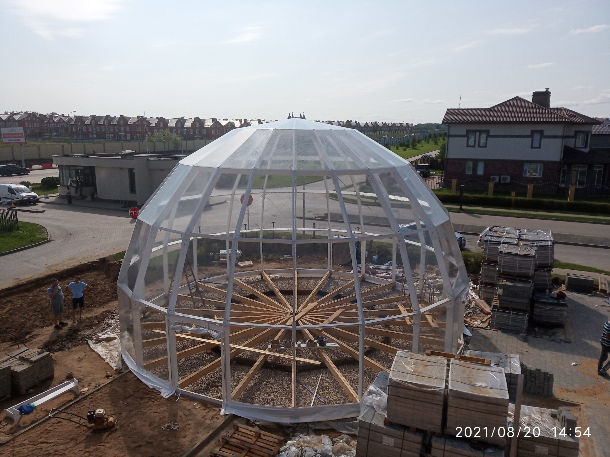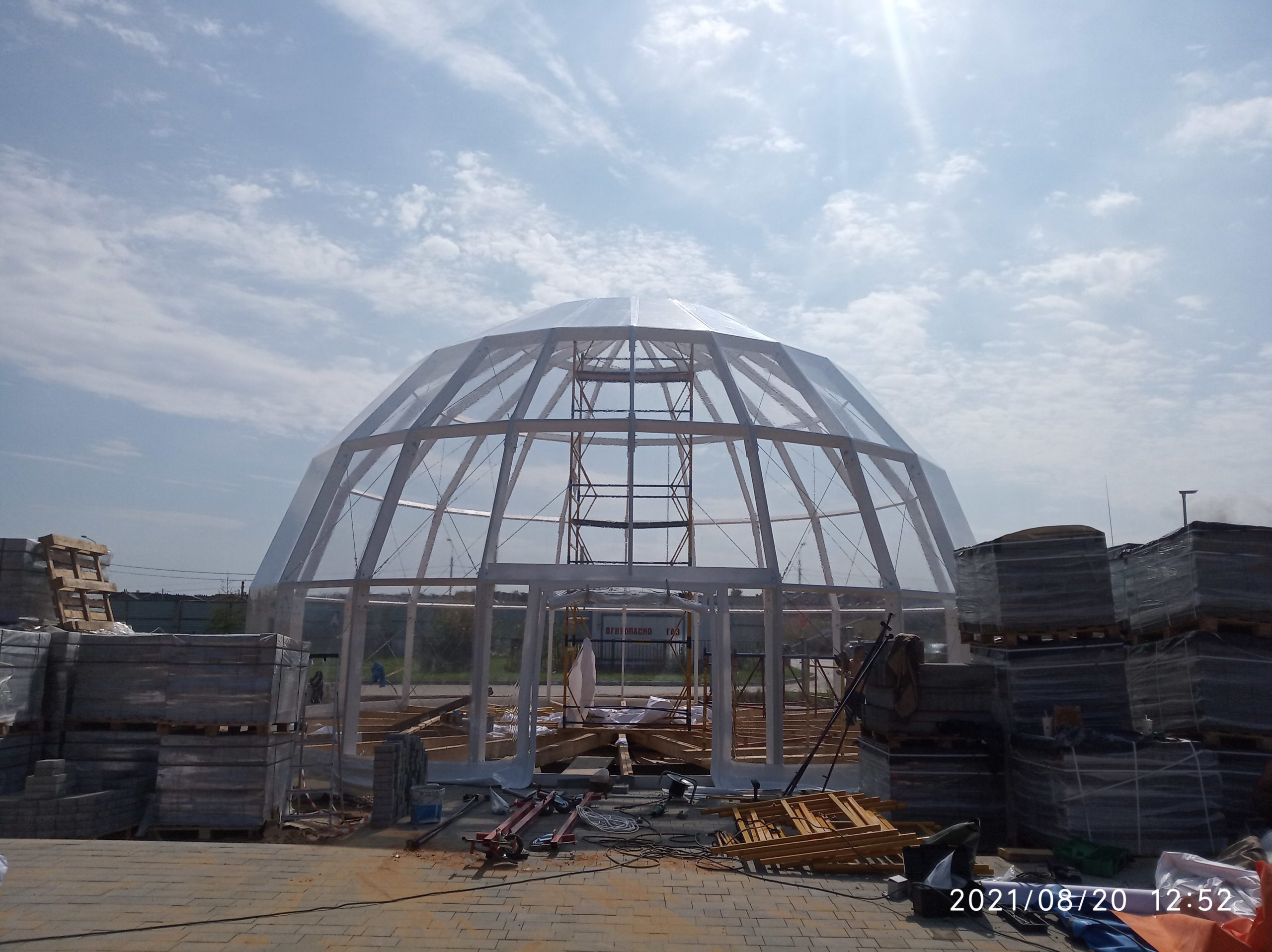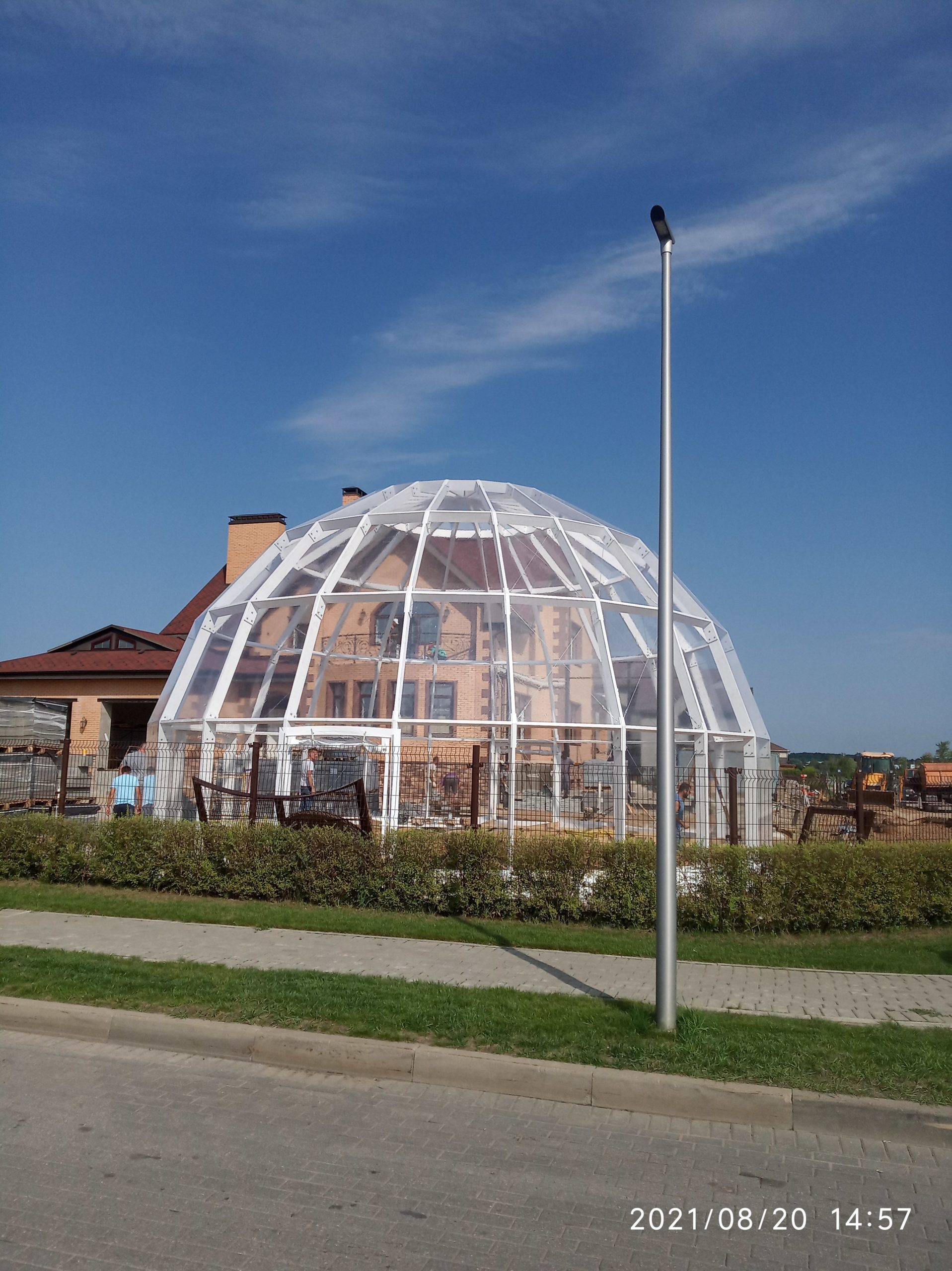 Сферический шатер из прозрачных ПВХ-материалов для мероприятий и зон отдыха.